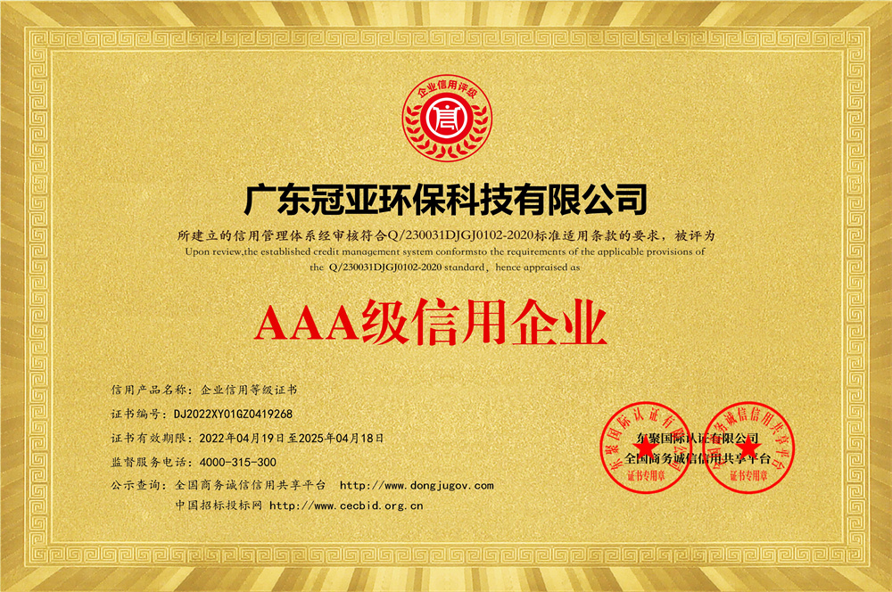 AAA級資信企業等級證書